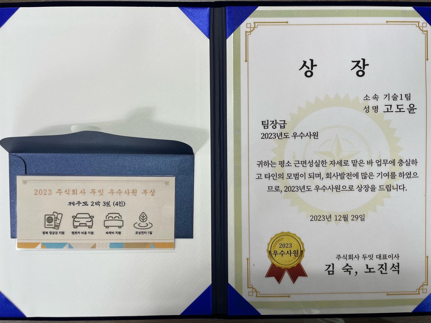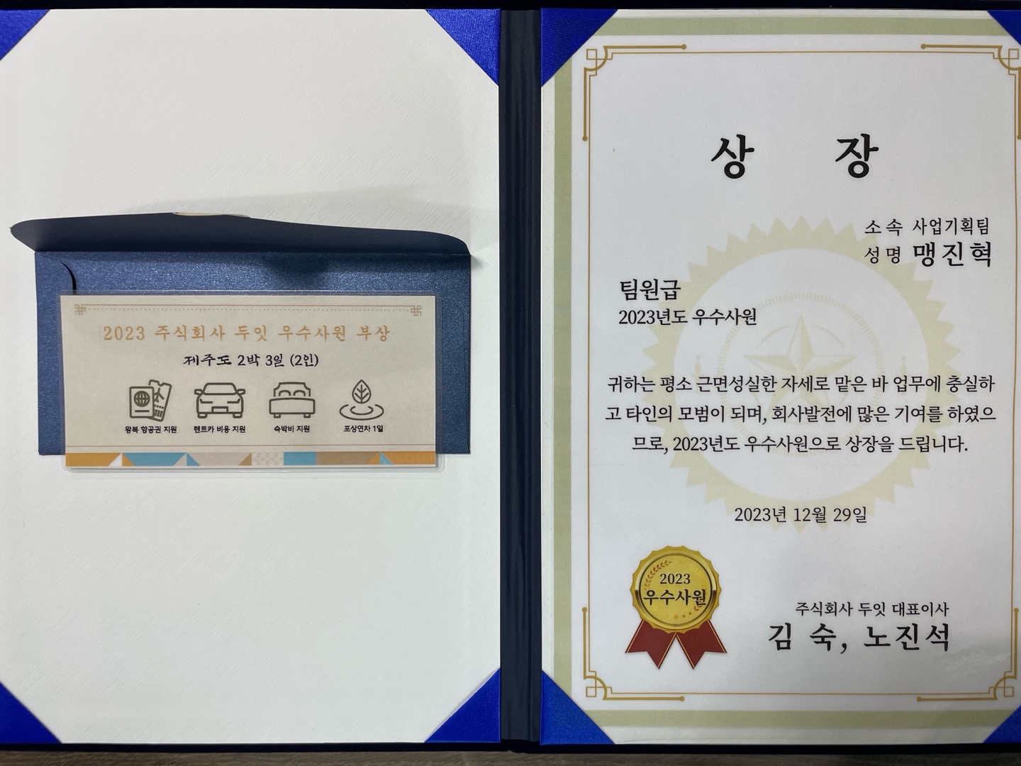 올해 우수사원 표장을 받은 고도윤 부장, 맹진혁 주임 축하합니다.~##