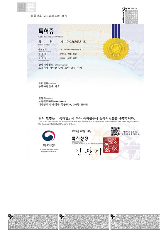 초음파에 기반한 수상 조난 알림 장치 / 10-2766638 A Water Distress Signal Device Based On Ultrasonic Wave / 10-2766638