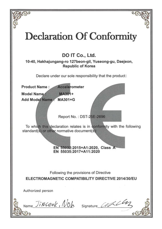 KC 적합등록필증 스마트 고성능 미소진동센서 / R-R-kdo-MA301G KC Certificate of Conformity – Smart High-Performance Micro-Vibration Sensor / R-R-kdo-MA301G
