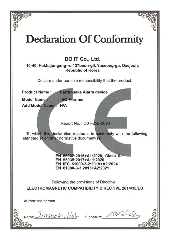 CE 인증 EQ-Alarmer / DST-25E-2696 CE Certification EQ-Alarmer / DST-25E-2696