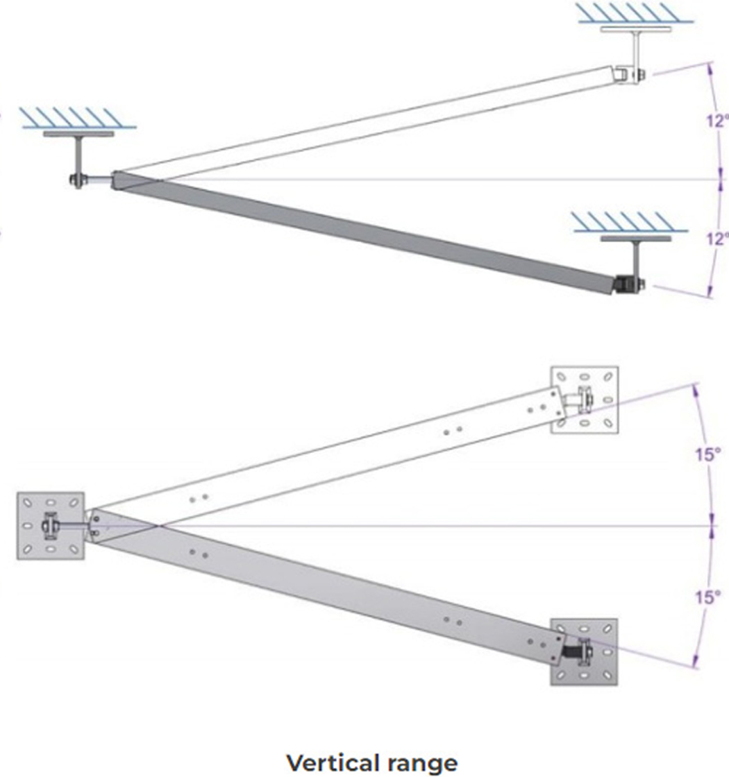 틸트 빔은 3축 틸트 노드, NanoPlus 또는 NanoMacro와 함께 사용되는 가볍고 단단한 알루미늄 빔입니다. 모든 방향에 장착할 수 있으며 단일 및 데이지 체인 구성으로 신속하게 전개할 수 있습니다. 틸트 빔의 설치는 몇 분 안에 최소한의 도구로 수행될 수 있습니다. 빔의 내장된 베어링 및 조인트 시스템으로 인해 복잡한 볼팅 및 와셔 배열이 필요하지 않습니다. 이것은 구조물을 여전히 정확하게 모니터링하면서 열 팽창 및 지지 브래킷의 오정렬을 허용합니다. 부착된 틸트 노드는 어떠한 레벨링도 요구하지 않 으므로 설치 시간이 더욱 단축됩니다.